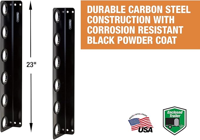 - Secure and Sturdy: Made from black, powder coated steel that resists rust and includes rubber grommets in each slot to help protect tools and handles while trailer is in motion