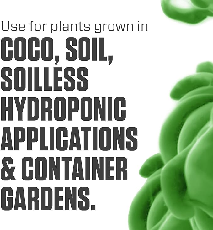 - For soil, coco, and container gardens or soilless hydroponic applications
