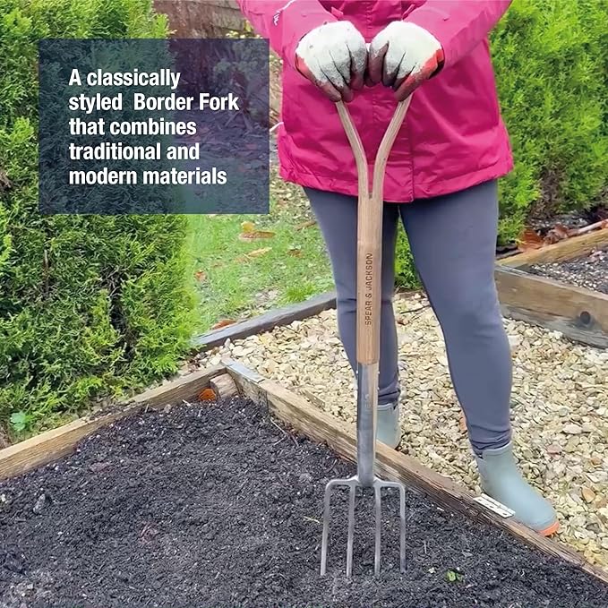 - Traditional English style border fork, designed for use in confined spaces or between established plants