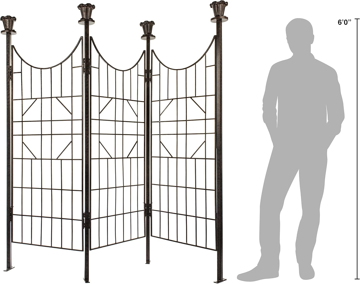 - Heavy and durable construction - H Potter's large metal garden screen trellis for climbing plants has a charcoal brown powder-coated finish and is made with heavy-duty iron and cast aluminum finials for ultimate durability and timeless appeal. It is perfect for courtyards, patio wall decor, metal yard art, privacy screens or standalone for climbers.