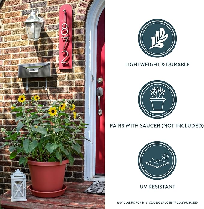 - CLASSIC UNIVERSAL LOOK - Trendy colors and a classic look allow this decorative pot to fit into any indoor & outdoor setting. These plastic plant pots are UV resistant and will not crack or color-fade over time.