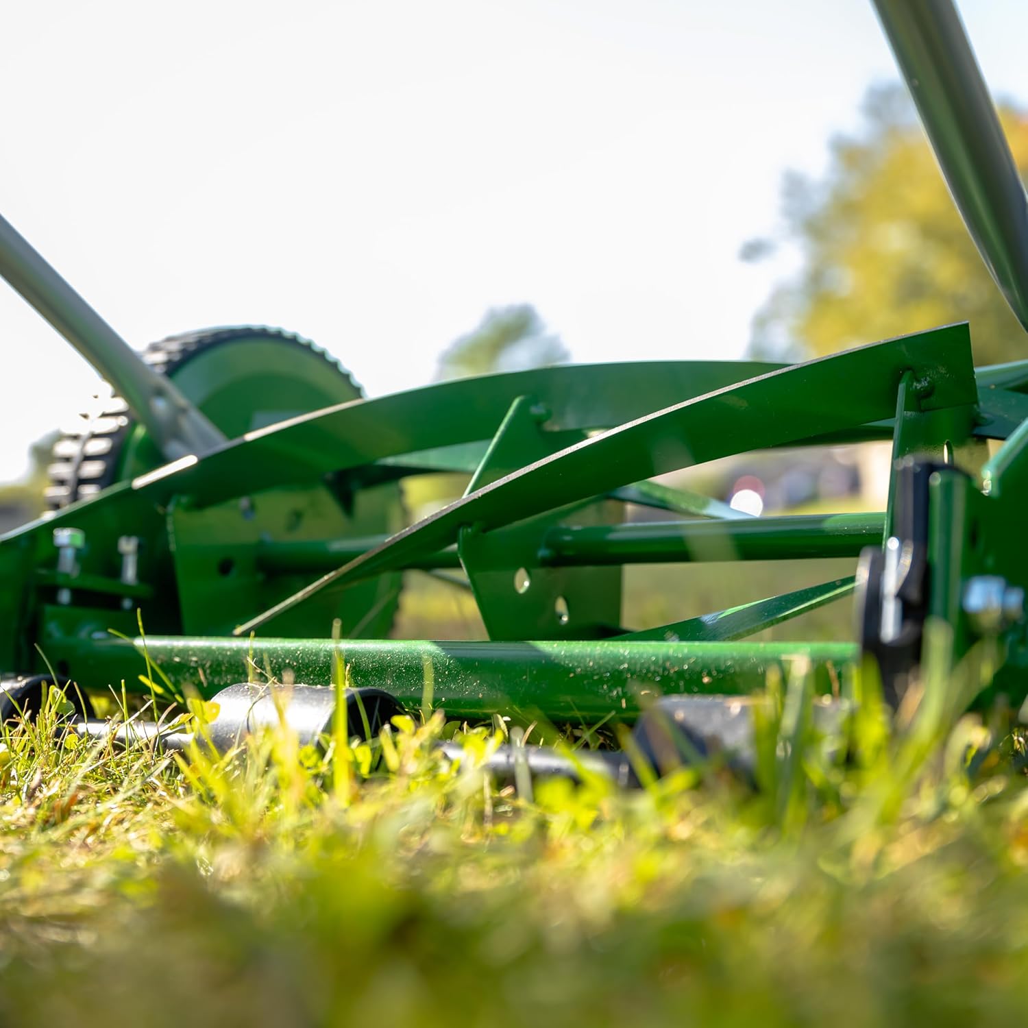 - A reel mower uses a cutting action that does not bruise or damage the blades of grass. For best results from Scotts push mower, mow no more than 1/3 of the grass blade, so that deeper roots are encouraged. Increase the amount of overlap while using your push mower if your lawn reaches a height of 4 inches or more. Try not reel mower when the grass is wet. It usually produces a very uneven cut