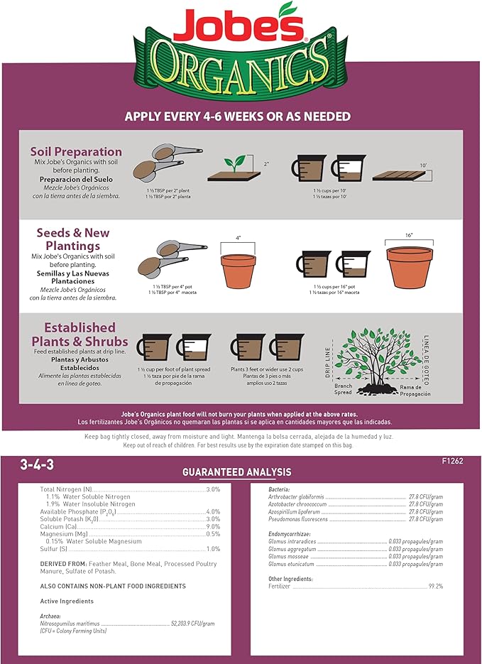 - Jobe's organic fertilizer is easily measured to provide the right amount of nutrients for roses and flowering plants without risk of over fertilizing