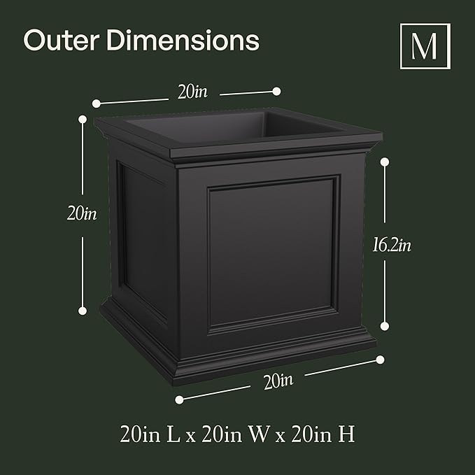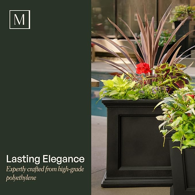 Mayne Fairfield 20-Inch Square Planter – Self-Watering, Weather-Resistant Planter for Flowers – Durable Outdoor Design for Patio, Porch, or Entryway