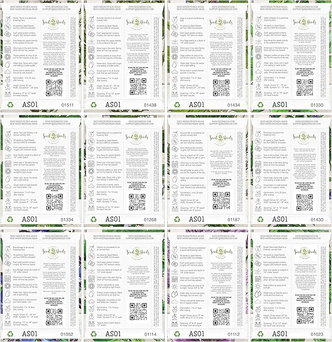 Seed Needs Herb Seeds Variety Pack Culinary Herb Collection (12 Individual Packets for Planting Indoors or Outdoors) Grow Your Own Organic Herb Garden - Heirloom, Non-GMO