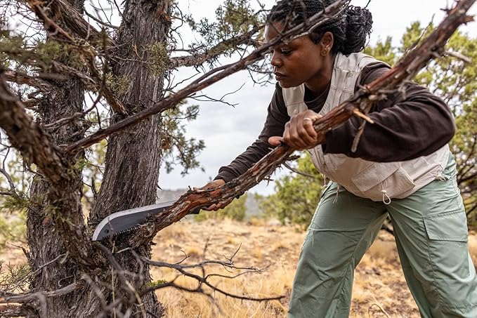 - SURVIVAL GEAR & EQUIPMENT: A portable and dual-purpose design makes sure you are prepared for various landscapes; the fine edge tackles brush and vines, while the saw cuts limbs and small trees