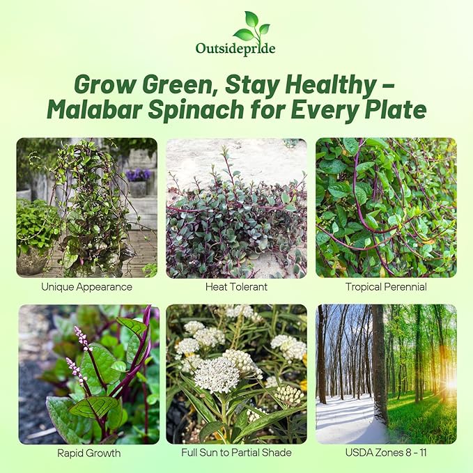- Malabar spinach can be grown as a perennial vegetable or herb used for culinary purposes or ornamental purposes in USDA Zones 8 - 11.