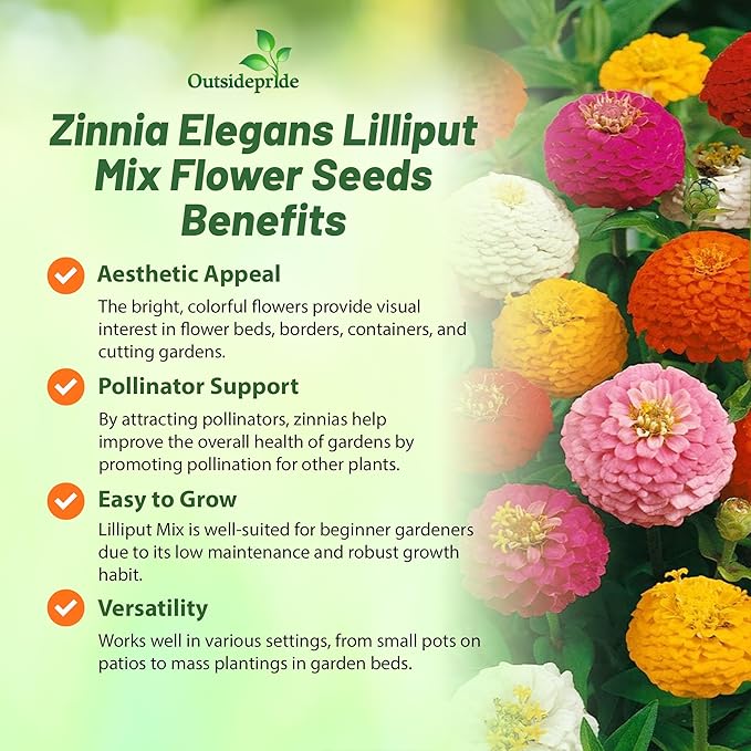 - HIGH-QUALITY ZINNIA SEEDS: Outsidepride’s Zinnia Elegans Lilliput seeds are non-GMO and freshly packed in the USA, perfect for outdoor planting in full sun and well-drained soil, ensuring robust growth all season.