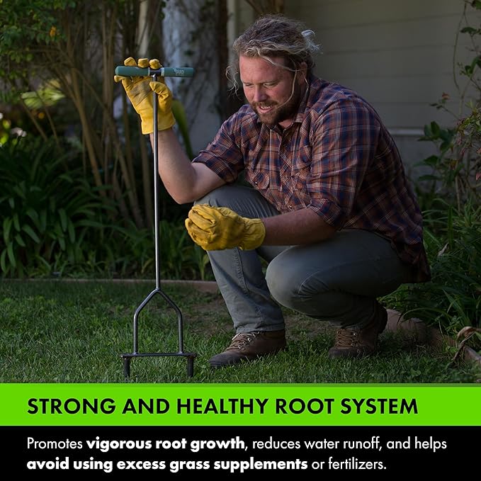 - PRODUCE STRONG & HEALTHY ROOT SYSTEM: It is a high-performance tool that will make a big difference in the vital health and survival of grass. It promotes vigorous root growth, reduces water runoff, strengthens tolerance to drought and heat stress, and helps avoid using excess grass supplements or fertilizers.