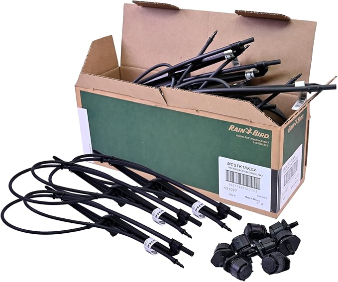Rain Bird MBSTKTF1S Drip Irrigation Micro-Bubbler, Adjustable Height Staked Riser with 1/4" Tubing and Barbed Coupler, 360° Full Circle Pattern, 0 - 3' Spray Distance