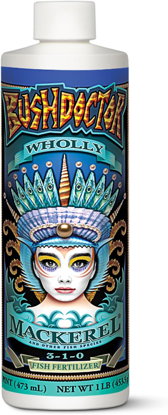 FoxFarm Bush Doctor Wholly Mackerel Fish Fertilizer, Fx14113 - Liquid Plant Nutrient for Seedlings, Transplants, and Vegetative Growth – NPK 3-1-0 (Pint)