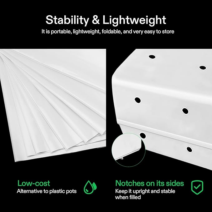 - Stability & Lightweight: The VIVOSUN Plastic Bag has notches on its sides to keep it upright and stable when filled and only weighs 1.2 pounds, so it is portable, lightweight, foldable, and easy to store; The dimensions are 5.5” x 4.2” x 12”(folded size)