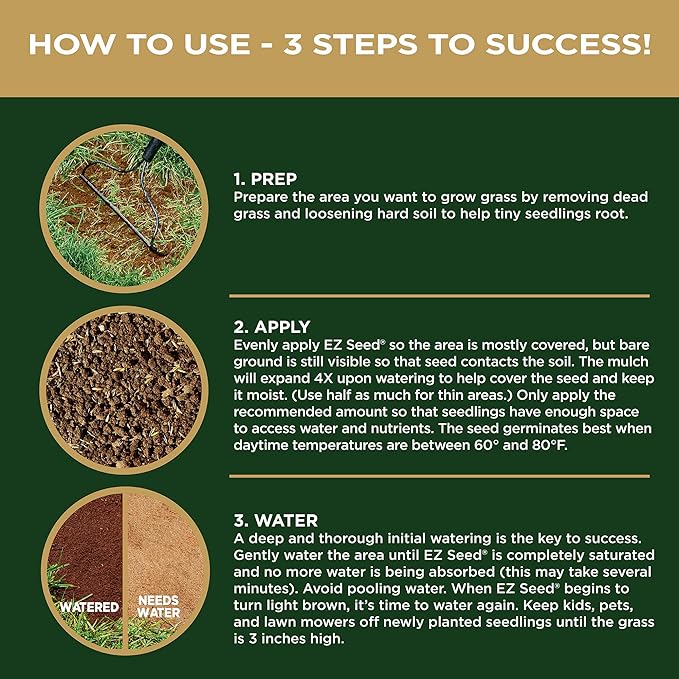 - EZ Seed Patch & Repair Sun and Shade contains a combination of mulch, grass seed, and fertilizer to cover up to 85 sq. ft. in 3 easy steps