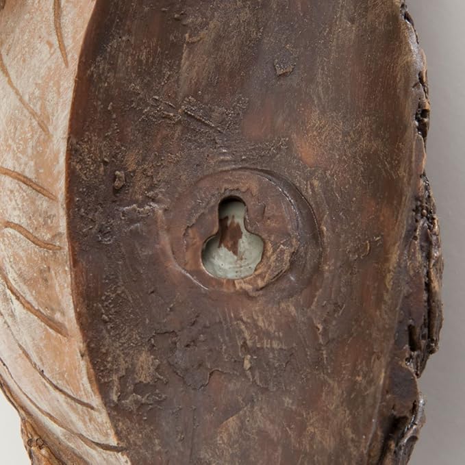 - Sculpted of polyresin, it takes on the appearance of bark and seemingly emerges from the tree trunk with a shushing motion