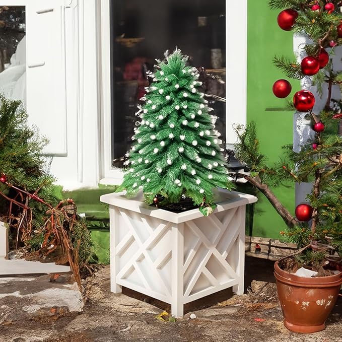 - OUTDOOR PLANTER - This 14.75-inch-square large plant pot is perfect for holding potted plants or flowers while providing a decorative cover for growing pots. The elegant lattice design adds a farmhouse-inspired touch to this patio planter box.