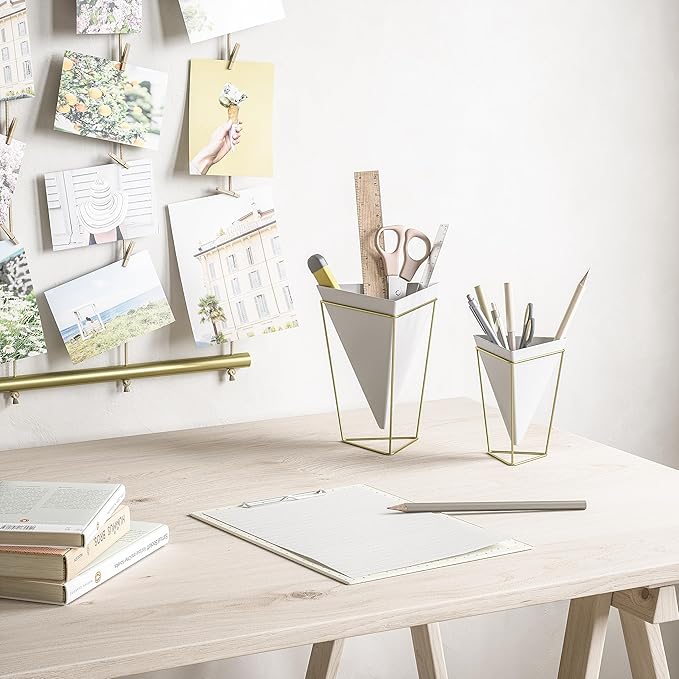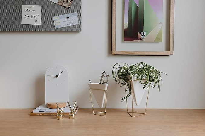 Umbra - 1004372-524 Trigg Desktop Planter Vase & Geometric Container-for Succulent, Air, Mini Cactus, Faux Plants and More, Desk, White/Brass
