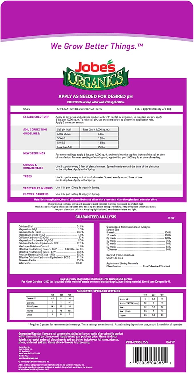 - Jobe's organic soil amendment is easily measured to provide the right pH level for plants and grass without risk of burning