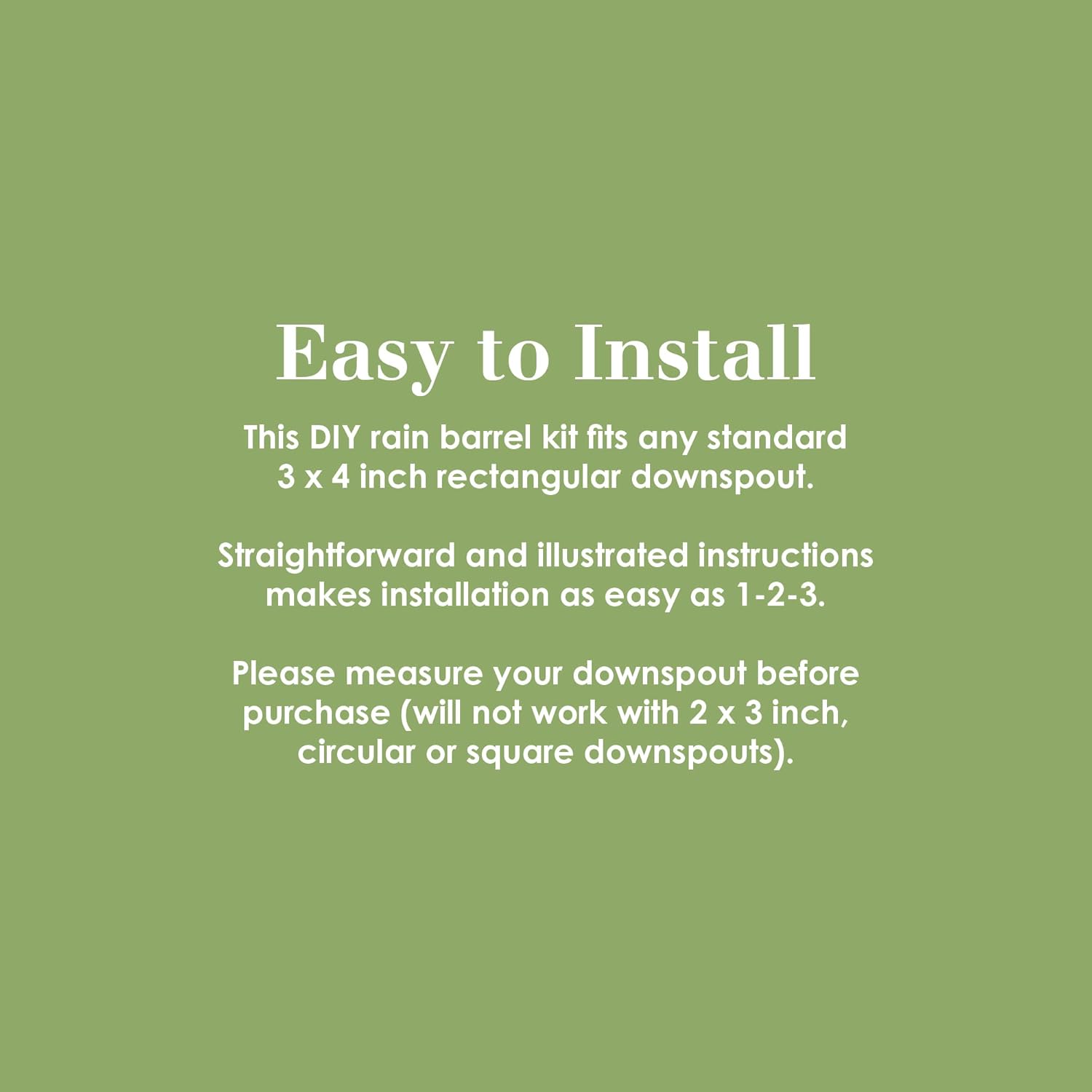 - This DIY rain barrel spigot kit fits any standard 3 x 4 inch rectangular downspout
