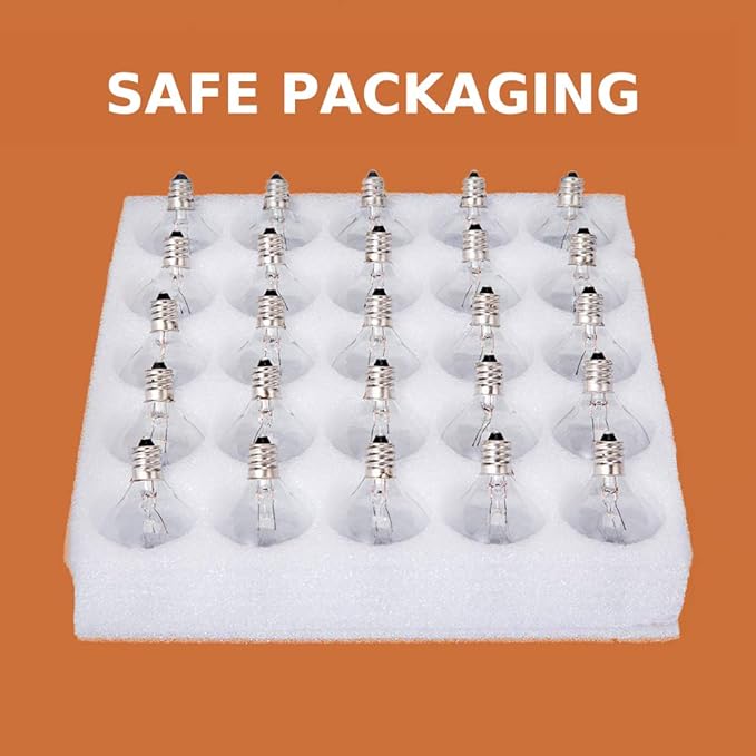 - 50FT G40 Globe String Lights is consistent of 53 clear bulbs. Candelabra Screw Base E12. Even quality high bulbs are bound to be broken one day and if one bulb burn out, others will also be working.