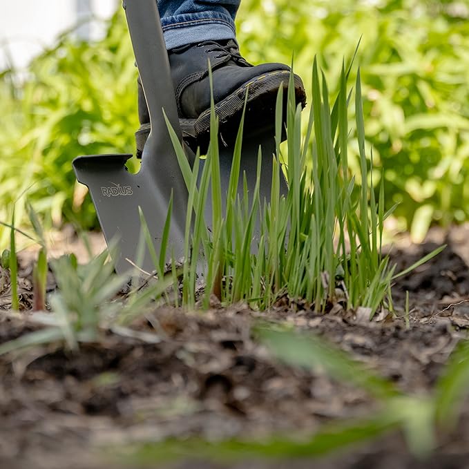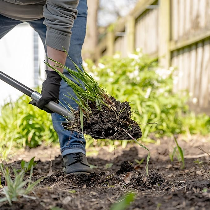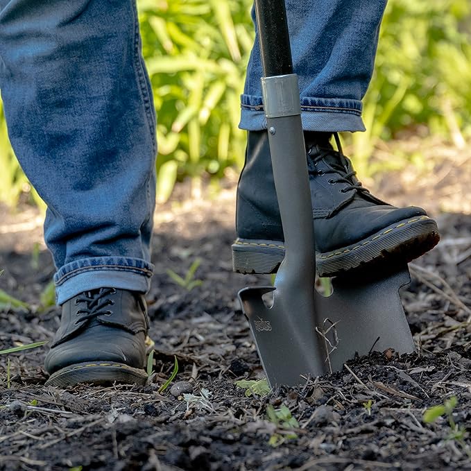 - Garden shovel with an extra-wide, elevated forward step that makes digging safer for you since it is designed to support your balance while digging