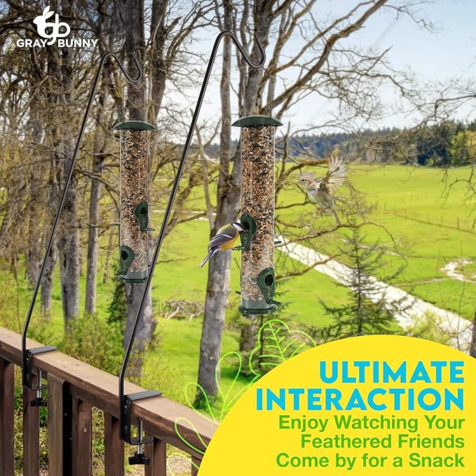 Gray Bunny Deck Hook 2 Pack, 30 Inch Bird Feeder Pole, with Non-Slip Clamp Deck Bird Feeder Hanger for Railing for Feeders, Planters, Suet Baskets, Lanterns, Wind Chimes and More