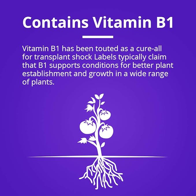 - CONTAINS VITAMIN B1: Vitamin B1 has been touted as a cure-all for transplant shock. Labels typically claim that B1 supports conditions for better plant establishment and growth in a wide range of plants.