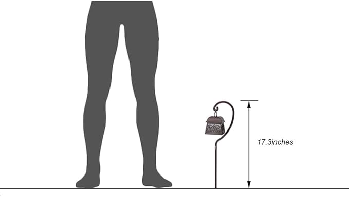- Perfect for a fairy garden, overall is about knee high,lantern is 5 inches high includes hook, measures 22 inches from top to bottom, above ground height after installation is approximately 17 inches, depending on the depth you install the stake. Made of plastic, but under normal use, they are strong enough, please don't worry it at all.