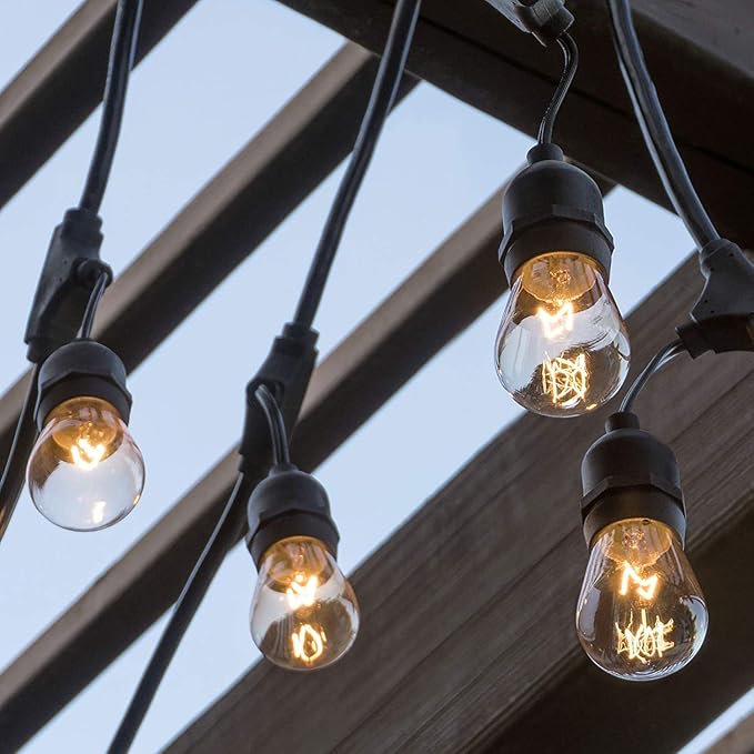 - Special Feature : 12 feet Outdoor String Lights, Commercial Grade Patio Lights, with 11W S14 incandescent Bulbs, waterproof light strings, DIY Hanging Lights Fixture 12 feet Outdoor String Lights, Commercial Grade Patio Lights, with 11W S14 incandescent Bulbs, waterproof light strings, DIY Hanging Lights Fixture