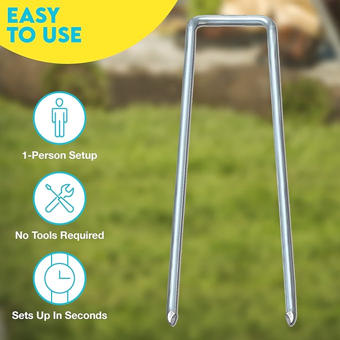 - EASY INSTALL: Sharp tipped U-pins ensure effortless ground penetration. Ideal for various soils; only a rubber mallet needed for harder terrains. Ample quantity in bulk pack, perfect for extensive backyard landscaping projects and installations.
