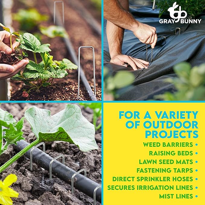 - VERSATILE: Ideal for various outdoor needs, our metal staples anchor gardening fabric, bed covers, seed mats, erosion blankets, and more. Secure sprinkler hoses, irrigation wires, and electric cables, including holiday lights and solar LEDs.