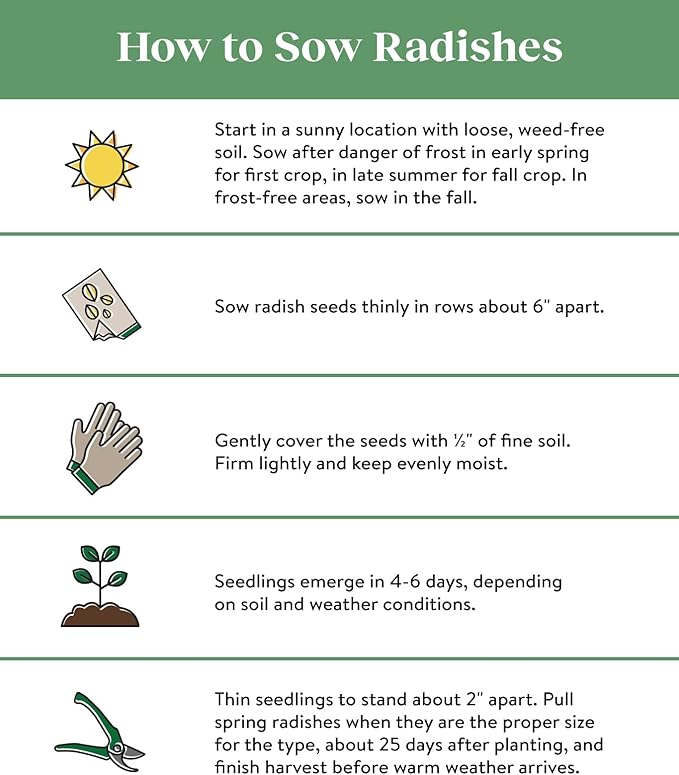 - Sow outdoors in early spring after the average last frost date and harvest in 22 days