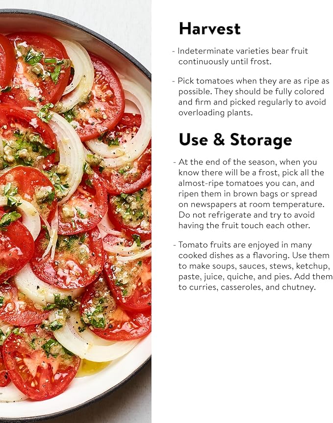- EASY GROW SEEDS: Healthy, indeterminate tomato vines produce all summer long, beginning about 80 days after transplanting into the outdoor garden. Bred to thrive, these seeds produce healthy 70" tall plants with a 60" spread and a 8-10oz fruit harvest.