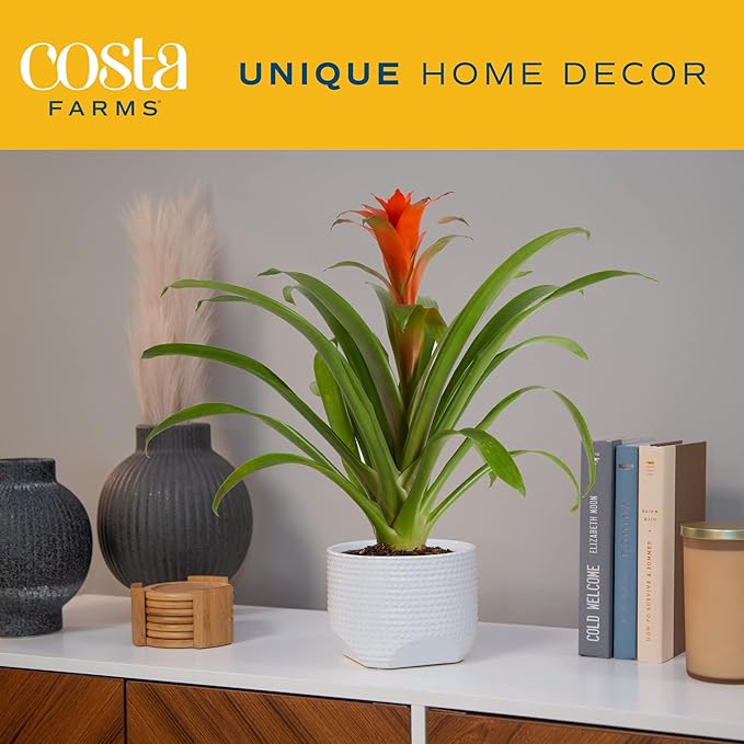 Costa Farms Bromeliad, Flowering Live Indoor Plant in Modern Flower Pot, Houseplant with Flowers in Potting Soil, Grower's Choice, New House Gift, Home or Room Decor, 20-Inches Tall