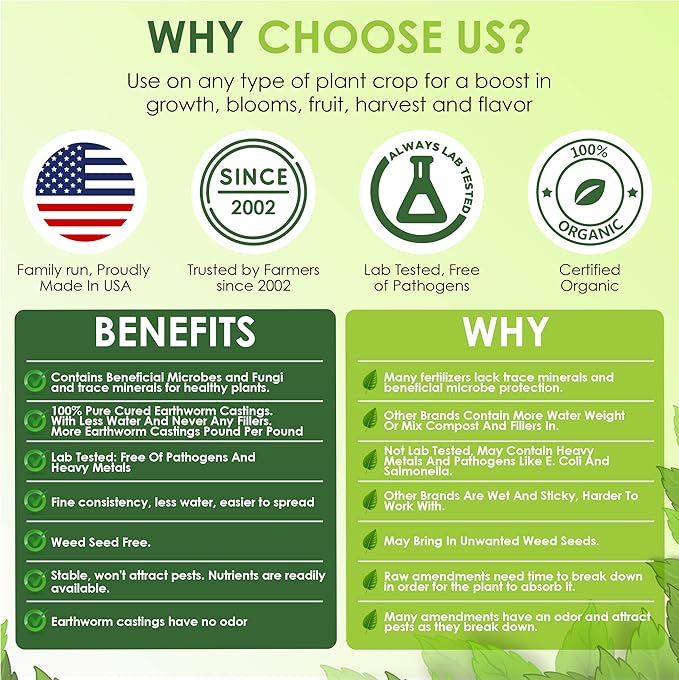 Premium Earthworm Castings - Organic 10 LB, Very fine, Low Moisture Content, Easy to Spread. Seed Starting, propgation, Improve Soil Structure, Natural Plant Hormones for Fertility