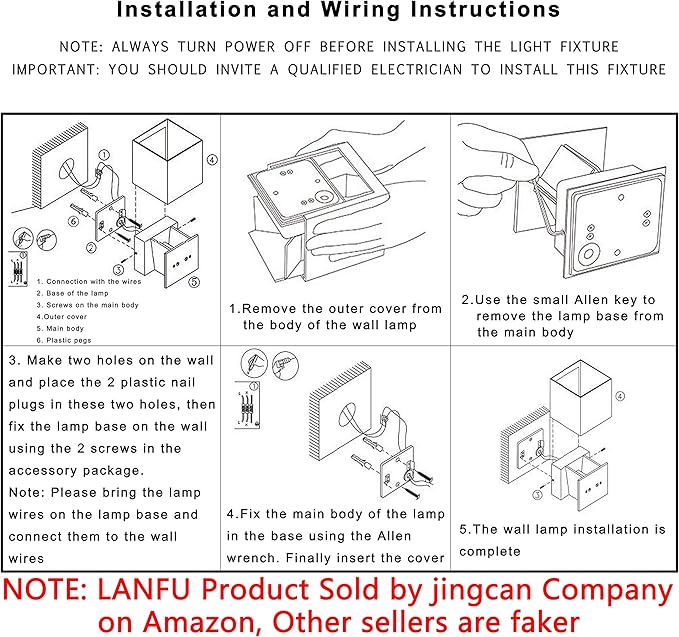 LANFU LED Aluminum Waterproof Outdoor Wall Sconce, 100-277V 3000K Outdoor Cube Square Wall Light Warm Light 2 LEDs Black 6W Outside Wall Lights for House Patio