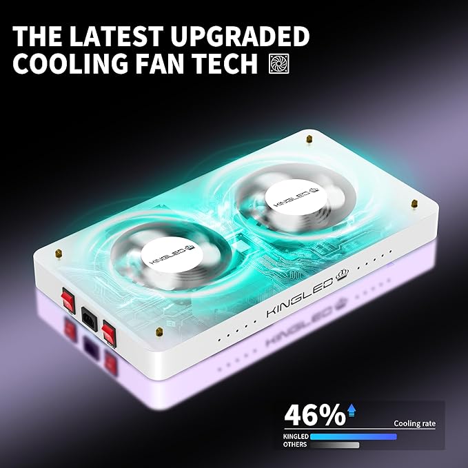 - Efficient Heat Dissipation: The aluminum heat sink and metal construction make excellent heat dissipation, keeping the temperature within optimal levels (50°f to 60°f); This cooling system prevents overheating, allowing the light to work efficiently without harming plants; Having the high-speed mute fans, the light remains quiet and stable, increasing its lifespan
