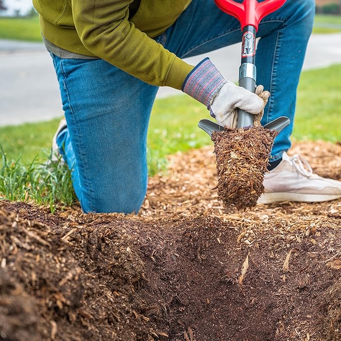 - Garden digger with a powder-coated carbon steel blade and a resin-encased carbon steel shaft for maximum durability with non-latex grips at the top for easy handling