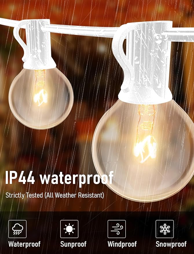 - Easy to Install & Water-resistant: Durable commercial string lights can be easily install and remove if you need to put them in other place.You just need to take them down carefully and put them in other place.Waterproof, Weatherproof, commercial-strength casing withstands extreme temperatures and wet weather