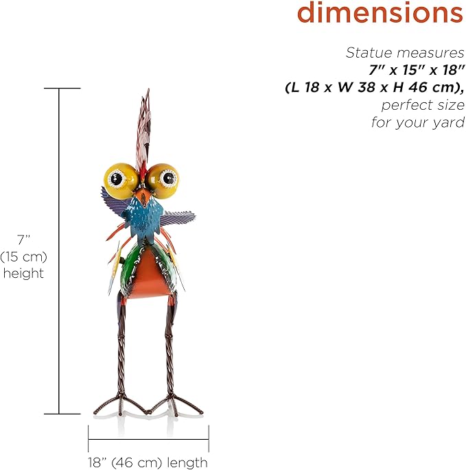 - PERFECT SIZE: At 18" tall, this colorful rooster is the perfect size for your yard, garden, or patio. Whether used as a centerpiece or tucked into a corner, it will add personality and charm without overwhelming your space. It’s a great way to introduce a fun and vibrant element to your landscape or porch