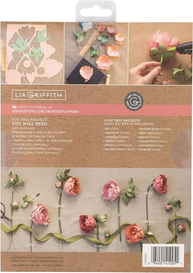 Lia Griffith Frosted Paper Peony Flowers, 8.5" x 11", Colors May Vary 20 Count