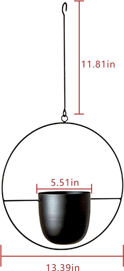 - Measurement:13.4*13.4*5.5 Inch,hanging bar length:11.81 inch. pot mouth diameter:5.5 inch. pot height:5.5inch