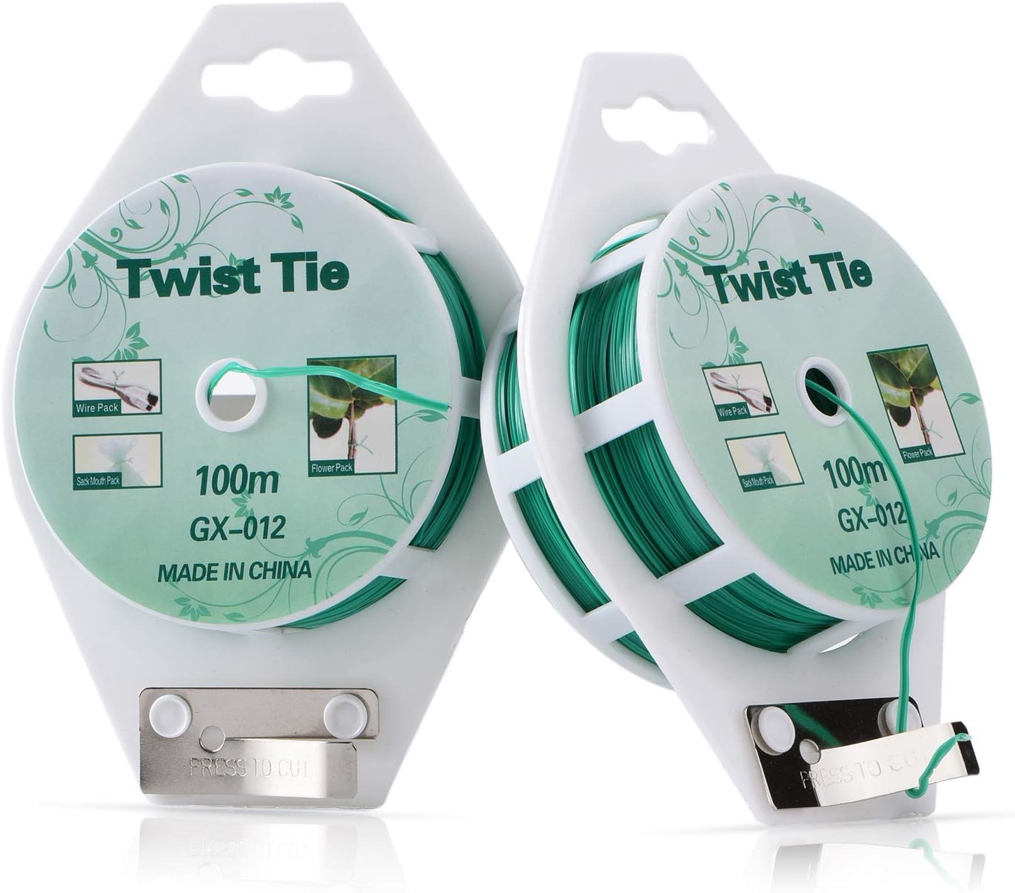 2 Reels 328 Feet (100m) Twist Tie, Green Coated Garden Plant Ties with Cutter for Gardening and Office Organization, Home