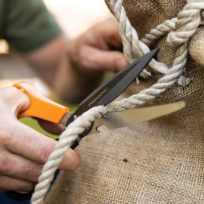 - LONG-LASTING AND RELIABLE: Trim Scissors with stainless steel blades stay sharp through heavy use and provide excellent durability for lasting value; Built-in sheath sharpener keeps Fiskars garden shears sharp between uses