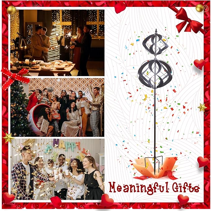 - Stable, Sturdy & Quiet: Spins 360 degree in a different direction. Ball bearing construction ensure the wind spinner spin quietly and smoothly in breeze. The solid ground stake and double globe spinners are with steel gray color coating finished. This is a sturdy yard wind spinners with stability solid stake to against bad weather.