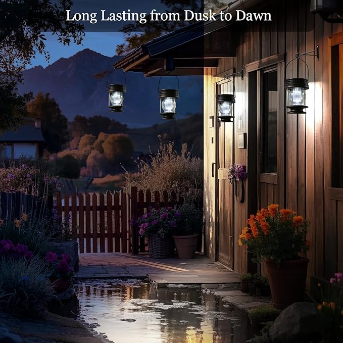 - 【ELEGANT VINTAGE DESIGN】 -- Solar lanterns outdoor hanging is made of high-quality bronze ABS plastic. make sure the button is in the " ON " positions before changing it in the sun. MAINLY MADE FOR DECORATION, NOT ILLUMINATION.