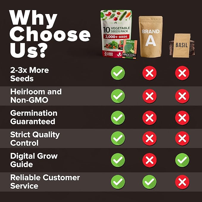 - Worry Free Gardening - Our seeds are consistently tested at or above 95% germination rates under optimal growing conditions. You wont need to worry about duds and seeds not germinating. Along with our high germination rate we include our Homegrown Garden Growing Guide that includes tips and best practices to help you on your gardening journey.