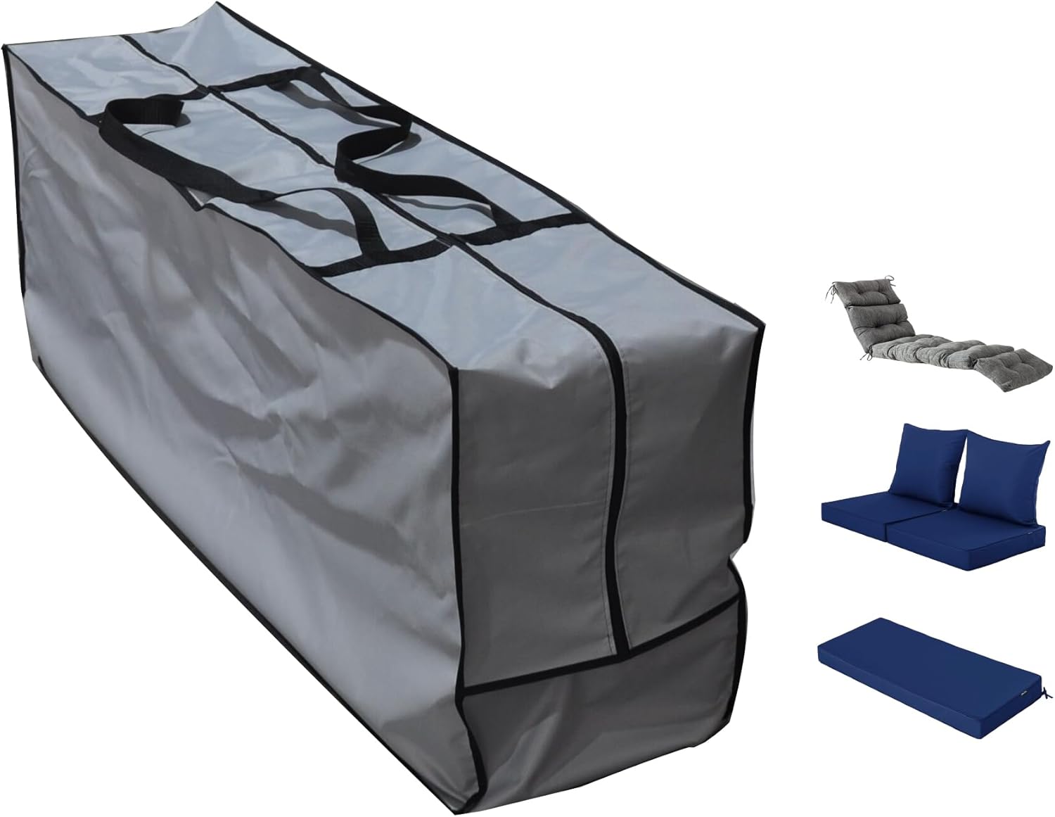 Outdoor Rectangular Cushion/Cover Storage Bag, Protective Zippered Storage Bags with Handles, 60"X20"X28" Grey