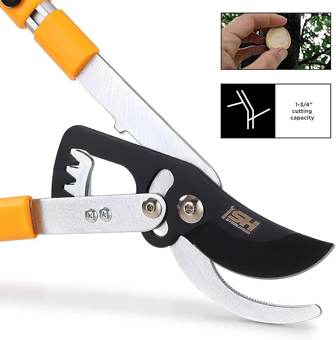 - [TOOL-LESS TELESCOPING ARMS FOR ADDED LEVERAGE] – Easily extend the length of the handles to 40” to cut the toughest of limbs & foliage. Simply unlock the limbs and extended to desired length then lock again.