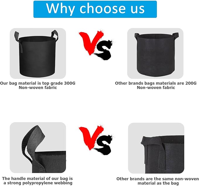 - 【Premium Material】Our grow bags are all made of high quality 300g thicken nonwoven fabric.
