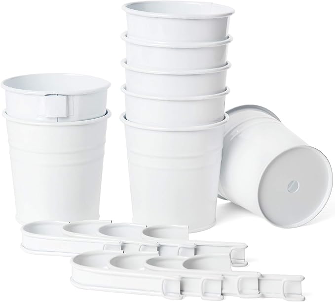 Dahey 10 Pcs Hanging Flower Pots Metal Iron Bucket Planter for Railing Fence Balcony Garden Home Decoration Flower Holders with Detachable Hooks, White, 4 Inches